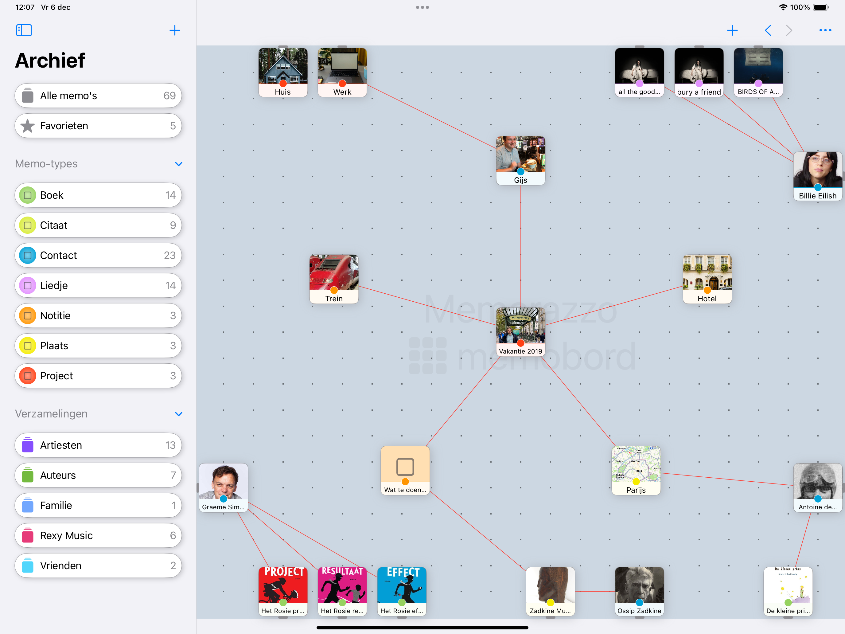 Memorazzo is een app waarmee je allerlei soorten informatie kunt opslaan en terugvinden. Gewone notities, of informatie over mensen, plaatsen, projecten, dagen, wat je maar wilt. Je kunt bijvoorbeeld informatie over je dagelijkse leven opslaan, of over je boeken, of over de mensen die je hebt ontmoet bij een bepaalde gelegenheid.